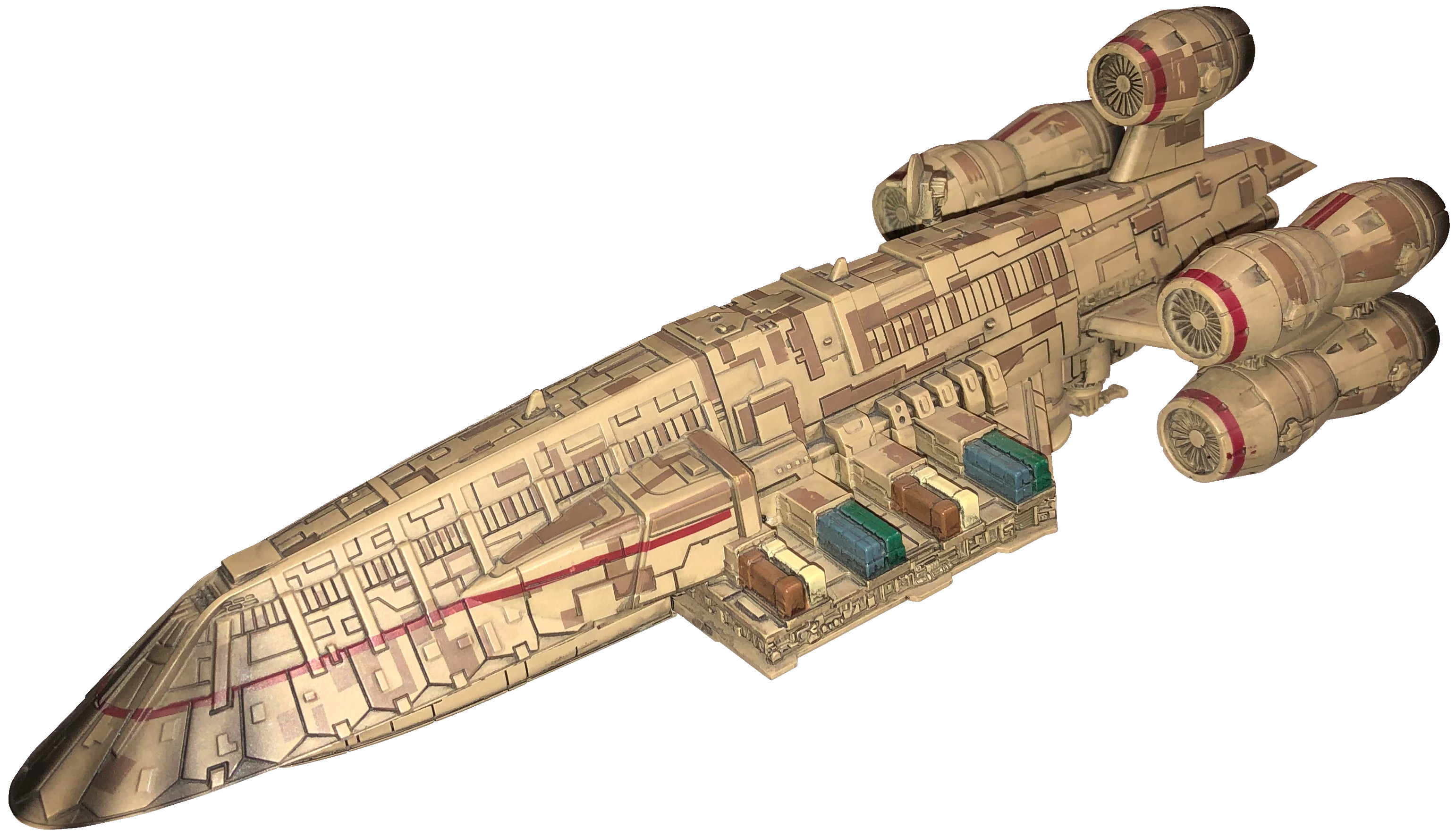 The C-ROC Gozanti-class light cruiser, also known as the C-ROC Carrier Ship, with the shipyard custom configuration known as the Configuration-Restored Operational Capacity, was an official modified version of the Gozanti-class cruiser that was manufactured by the Corellian Engineering Corporation prominently during the Clone Wars and the Imperial Era. read more