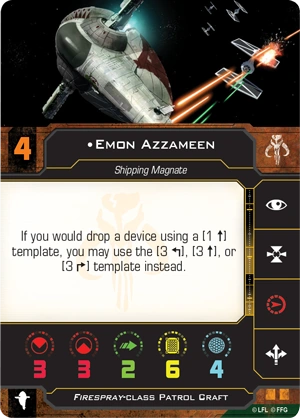 Emon Azzameen was a Human male who was the quick-tempered son of Tomaas Azzameen and the middle brother of the Azzameen siblings during the Galactic Civil War. He was second in line to take over the family cargo company. A skilled pilot, Emon owned his own Firespray-class starship, the Andrasta. read more