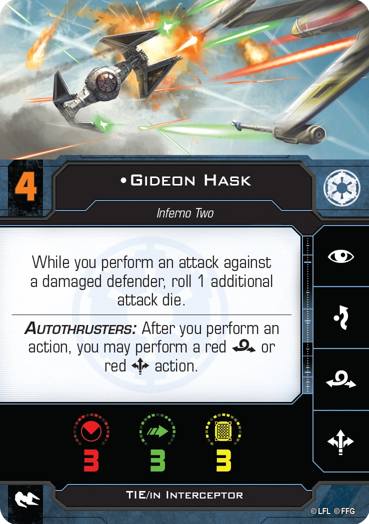 Gideon Hask, nicknamed "Gid," was a human male native of the planet Kuat. During the Galactic Civil War, Hask served as a soldier and starfighter pilot before joining the ranks of Inferno Squad—an elite commando unit of the Galactic Empire. read more