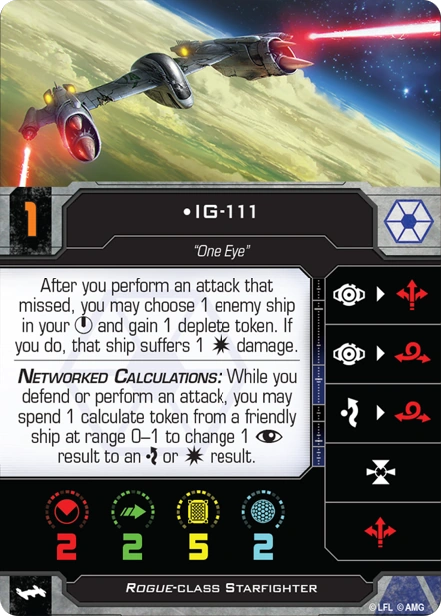 After you perform an attack that missed, you may choose 1 enemy ship in your and gain 1 deplete token. If you do, that ship suffers 1 damage.