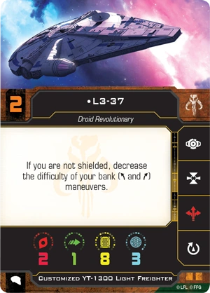 L3-37, abbreviated L3, or Elthree, or Vuffi, was a feminine custom self-made piloting droid associated with Lando Calrissian who was active during the reign of the Galactic Empire. She was a one-of-a-kind droid, assembling and improving herself with scraps of other droids, including her torso, which she pieced together from an old astromech. Her brain module began as part of an R3-series astromech droid, including data from an espionage droid, custom coding and protocol droid processors. L3 was also built from already used protocol parts and was also an enlightened navigator. She cared deeply about droid rights, a trait which led to her eventual demise. read more