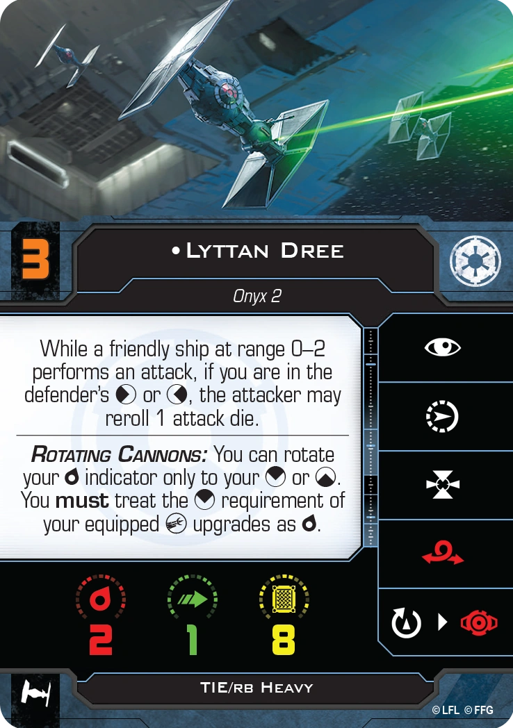 Lyttan Dree, or Cadet 541-145, was a male human who served as a cadet and second-in-command in Onyx Squadron in the Galactic Empire under the callsign Onyx 2. Unlike most cadets, Dree was good friends with fellow cadet Han Solo. Solo was impressed with Dree's ability to be his friend, a good pilot and follow the rules all at the same time. read more