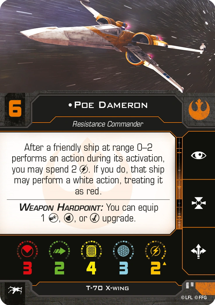 - Poe Dameron (Trigger-Happy Flyboy) (T-70 pilot from the Resistance Conversion Kit & T-70 X-Wing Expansion Pack)