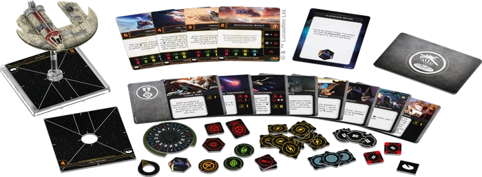 Within the Punishing One Expansion Pack, you’ll find everything you need to add one JumpMaster 5000 to your Scum and Villainy squadrons. Reprints of three pilots join Dengar in the pursuit of profit while twelve reprinted upgrade cards give new players plenty of options for putting a personal touch on their ships. Finally, two Quick Build cards offer useful combinations of pilots and upgrades to maximize your JumpMaster 5000’s effectiveness.