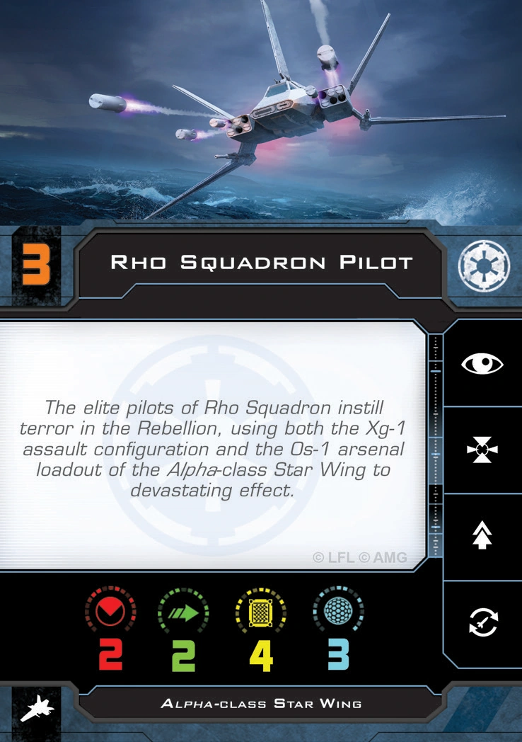 The elite pilots of Rho Squadron instill terror in the Rebellion, using both the Xg-1 assault configuration and the Os-1 arsenal loadout of the Alpha-class star wing to devastating effect.